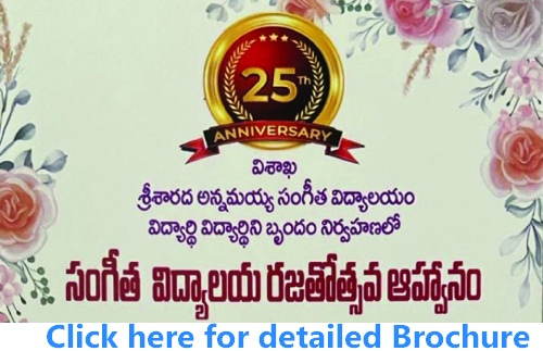 On 9th August, 2025 Visakha Sri Sarada Annamayya Sangeeta Vidyalayam - Rajatotsavam at Sri Panduranga Swamy Temple, Beach Road, Visakhapatnam from 5:30pm onwards.