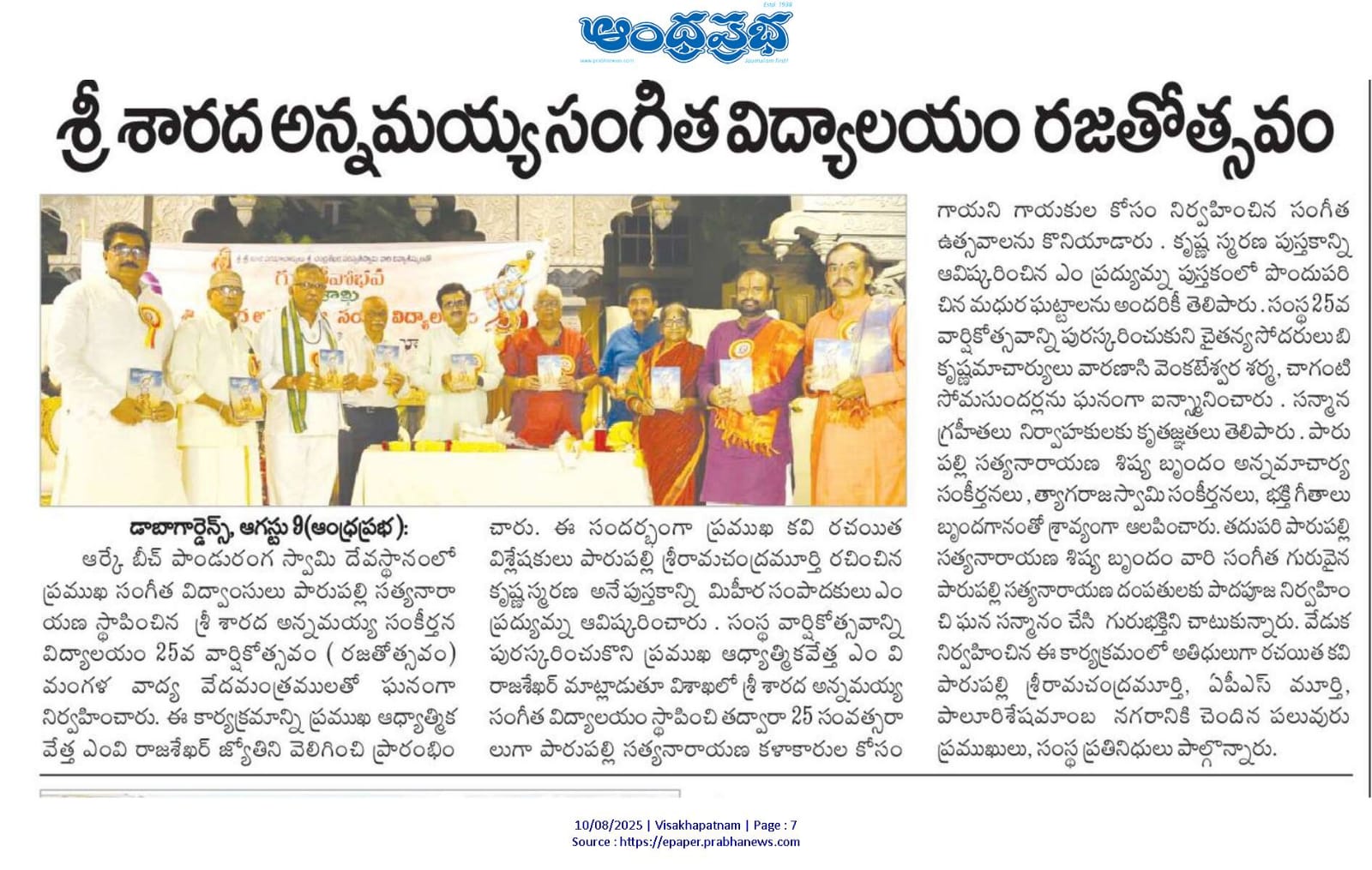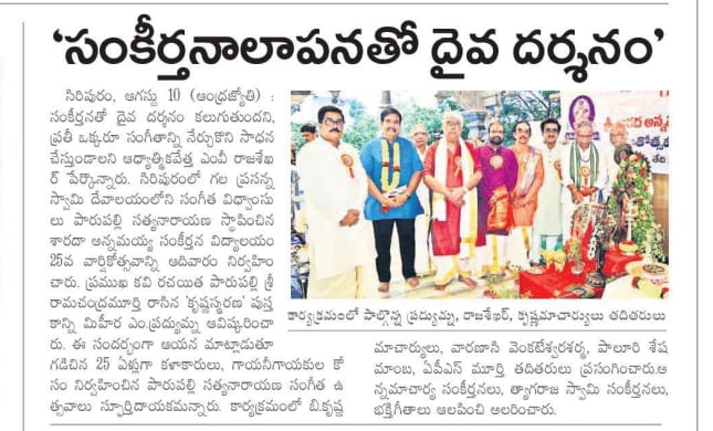 Parupalli Satyanarayana hails from a family of musical flow. "Gaayaka Saarawabhowma" Parupalli Ramakrishnayya Pantulu, the legend who sowed the seeds of Carnatic Music in Andhra Pradesh. Whose creative tutelage groomed the legends of Carnatic Music like "Padma Vibhushan" Sri Mangalampalli Balamurali Krishna etc.,